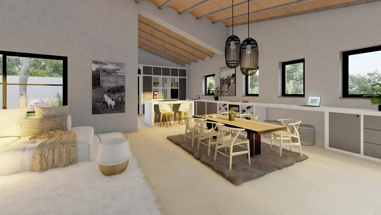 Die Konzeption dieses Vorhabens wurde von der angesehenen und talentierten Architektin Maria Ramis aus Binissalem entwickelt, die durch ihren innovativen Ansatz und ihre Kenntnisse der mallorquinischen Architektur ein bemerkenswertes Wohnkonzept geschaffen hat.